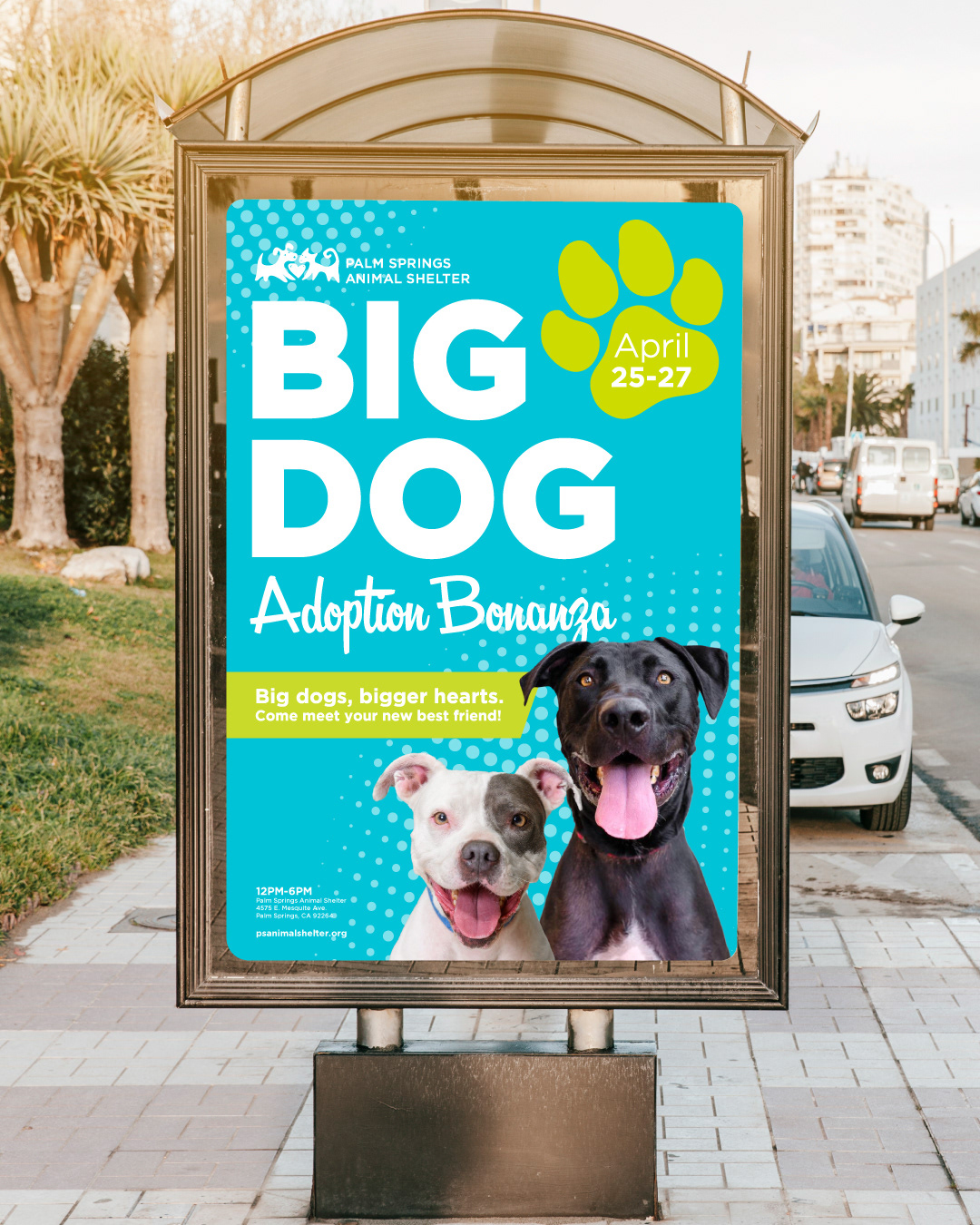 The Palm Springs Animal Shelter is an open admissions municipal shelter serving the city of Palm Springs and providing programs for animals, pets and pet owners across the Coachella Valley. Provided design support for PSAS and the Greater Palm Springs Animal Allies individual operations with deliverables ranging from printed brochures, postcards, and ads to digital assets and banners, as well as merchandise and event signage.