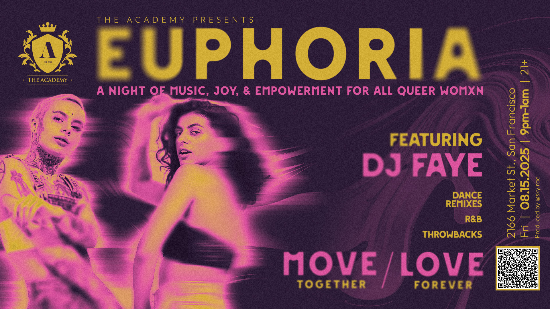 The Academy is a LGBTQ+ social club and event space focused on promoting genuine social interactions while offering engaging programming in collaboration with nonprofit organizations, local businesses, and leading community members. Provided creative direction on a brand refresh, as well as designed visual identities for The Academy events, building out multiple digital and print assets for promotional use and signage.